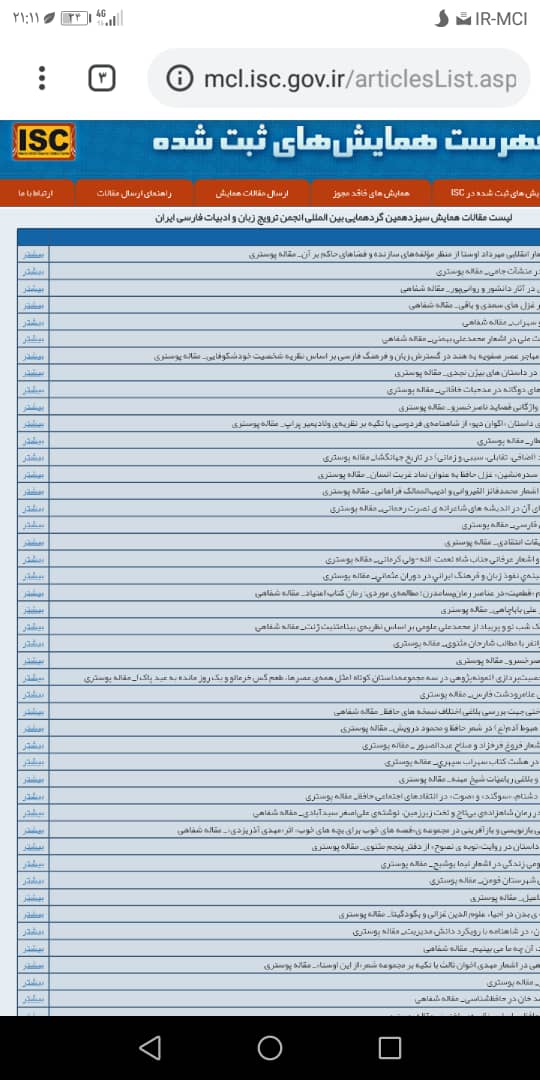 با سلام، احترام و سپاس فراوان از همکاری شما با دبیرخانهی سیزدهمین گردهمآیی بینالمللی انجمن ترویج زبان و ادب فارسی به استحضار میرساند خوشبختانه برای نخستین بار در کشور، همهی مقالههای برگزیده پیش از گردهمآیی، در پایگاه استنادی علوم جهان اسلام(ISC) نمایهسازی شده و هم اکنون قابل بازیابی است. علاقمندان و نویسندگان میتوانند مقالهی ارزشمند خود را در این پایگاه جهانی ببینند و در صورت لزوم دریافت فرمایند.