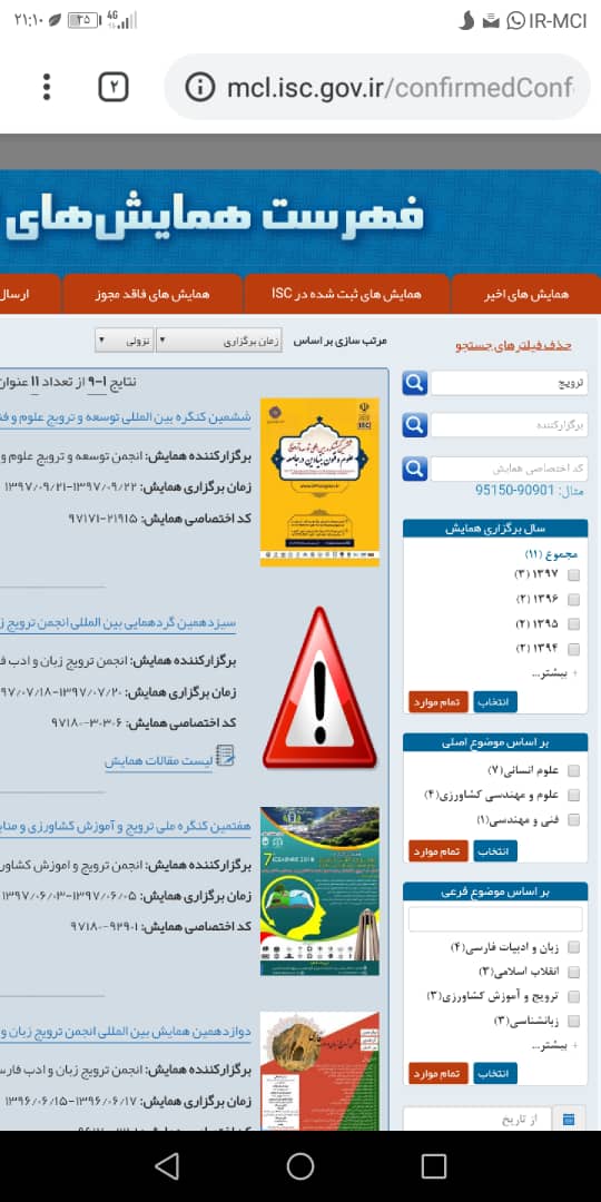 پژوهشگران محترم برای مشاهدهی مقالات میتوانند با مراجعه به آدرس mcl.isc.gov.ir با ورود بخش همایشهای ثبت شده پس از جستجوی همایش سیزدهم با کلیک روی لیست مقالات، از بخش گزینهی بیشتر فایل تماممتن مقالات را بازیابی کنند.