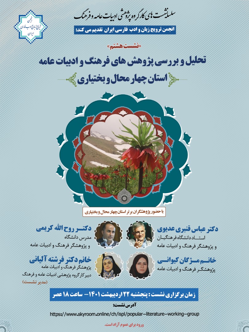 کارگروه پژوهشی ادبیات عامه و فرهنگ تقدیم می کند: تحلیل و بررسی پژوهش های فرهنگ و ادبیات عامه             (استان چهارمحال و بختیاری)پیام تسلیت انجمن به مناسبت درگذشت حجتالاسلام والمسلمین سید محمود دعایی