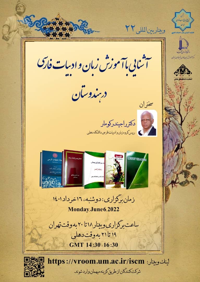 کارگروه آموزش زبان و ادبیات فارسی تقدیم می کند: آشنایی با آموزش زبان و ادبیات فارسی در هندوستانپیام تسلیت انجمن به مناسبت درگذشت حجتالاسلام والمسلمین سید محمود دعایی