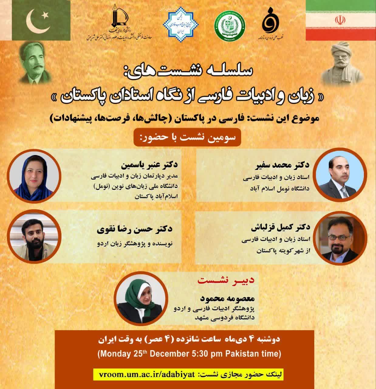 سلسله نشست ها با اساتید پاکستان، موضوع نشست: فارسی در پاکستان (چالش ها، فرصت ها، پیشنهادات) پیام تسلیت انجمن به مناسبت درگذشت حجتالاسلام والمسلمین سید محمود دعایی